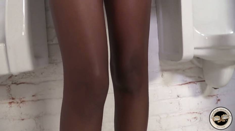 Ebony chick Karma May enjoys blowing hard penis in glory hole video