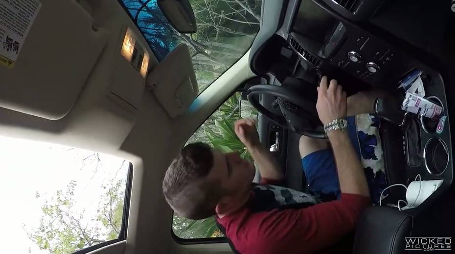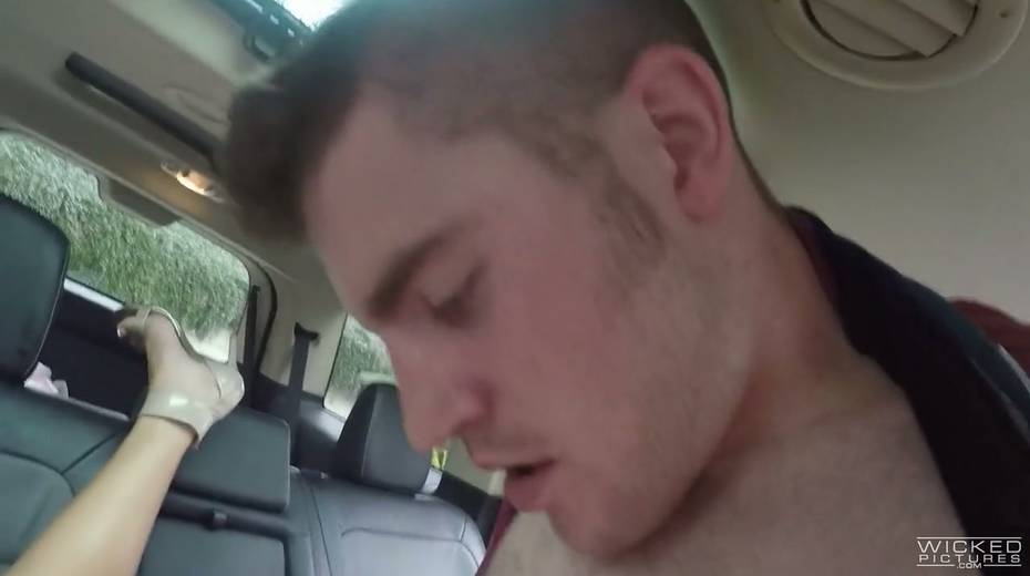 Nasty hitcher Teanna Trump gives blowjob in the car and gets her pussy doggy fucked