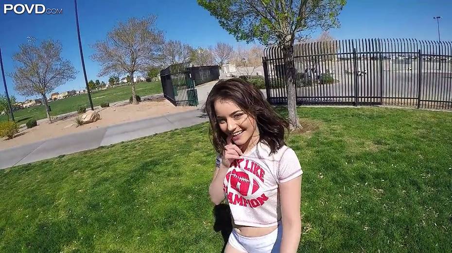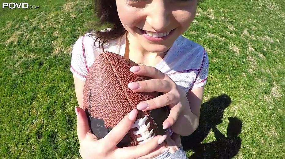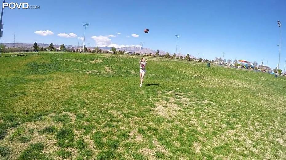 Baseball fan Kylie Quinn gives her head and gets rammed on a pov camera