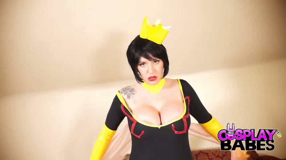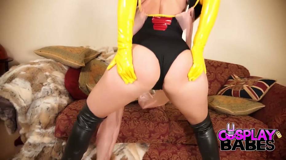 Busty cosplay chick Yuffie Yulan enjoys fucking herself with big black sex toy