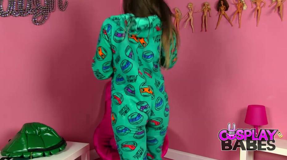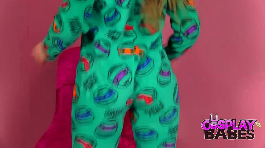 Cosplay babe Elouise fucks herself with big dildo toy