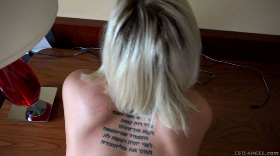 Lecherous tattooed Harlow Harrison gives her head and takes semen on her chin