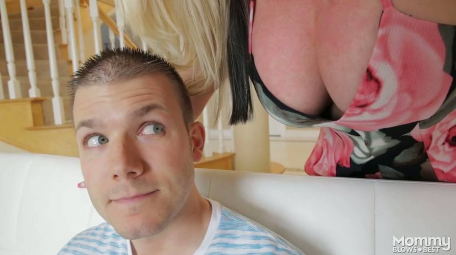 Super juggy milf Alena Croft gives blowjob to best friend of her stepson