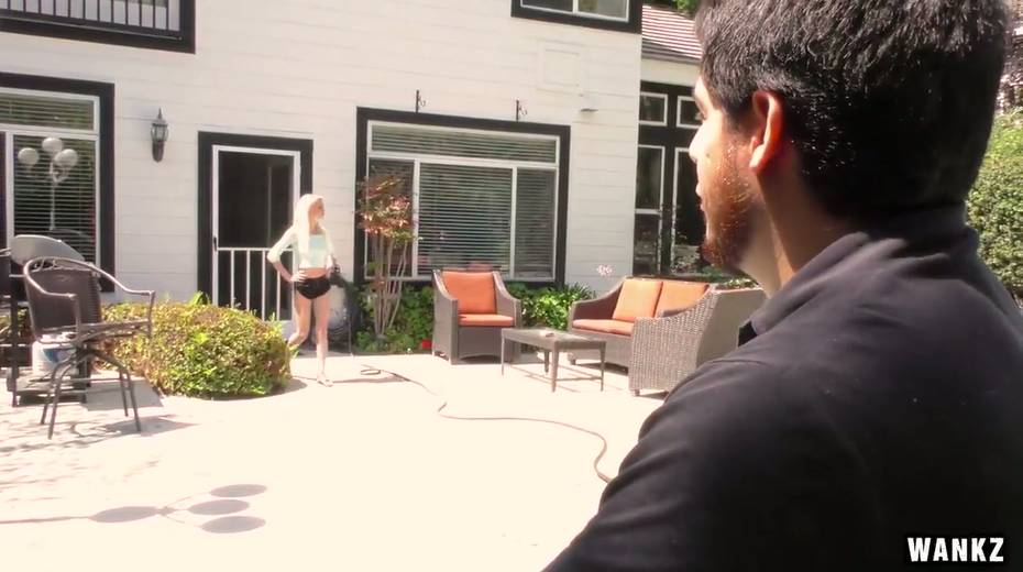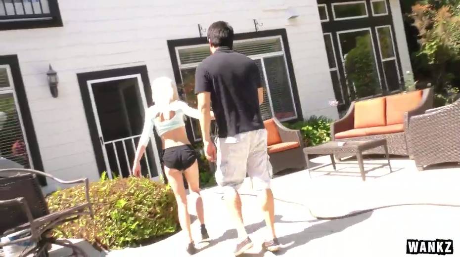 Skinny blonde Maddy Rose asks one guy to fuck her deep throat