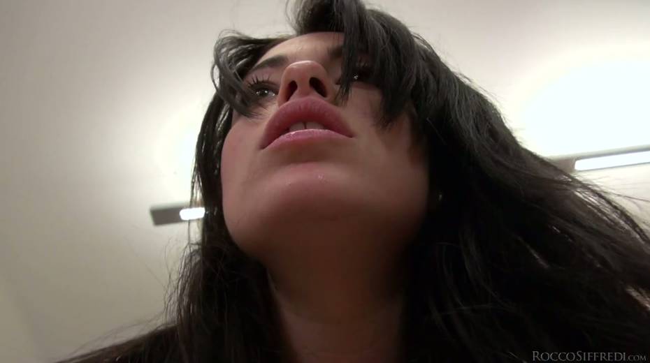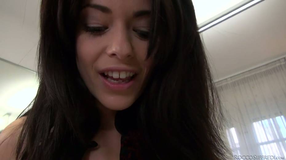 Pretty brunette Ava Dalush swallows meaty dick before rough pounding
