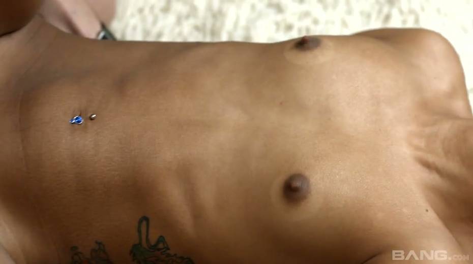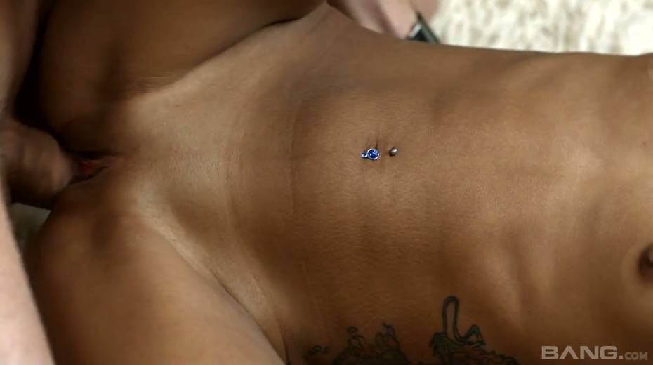 Petite tattooed babe Mary Dee is sucking big dick before cock riding