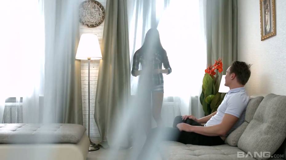 Graceful brunette Tera Gold rides dick before taking semen in her pinkish pussy