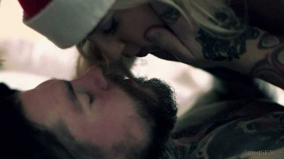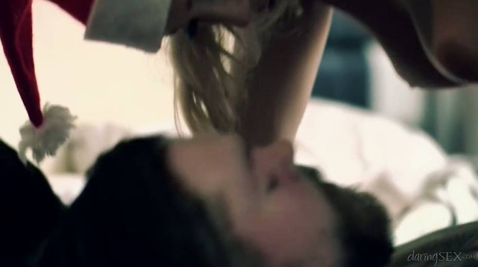 Seductive blondie wearing Santa's hat Carla Cox gives blowjob and rides dick