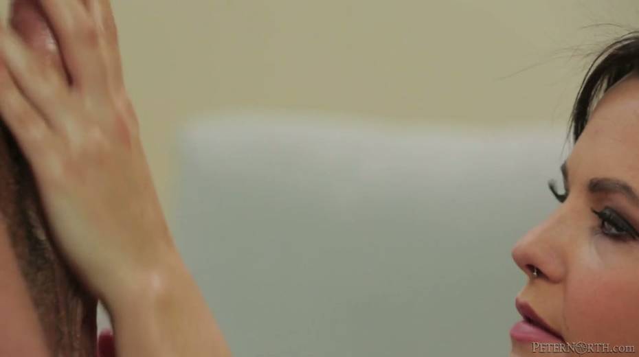 Seductive milf Brooklyn Daniels shows her ass and gives blowjob and titjob