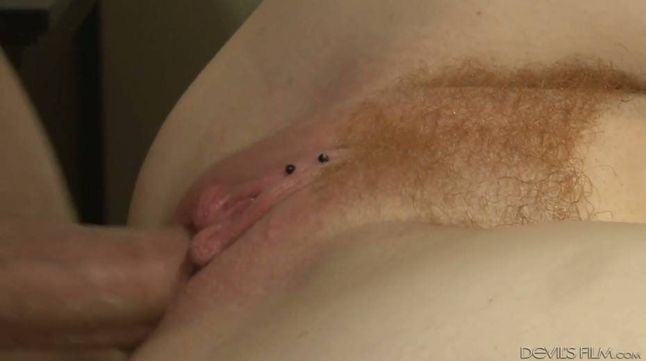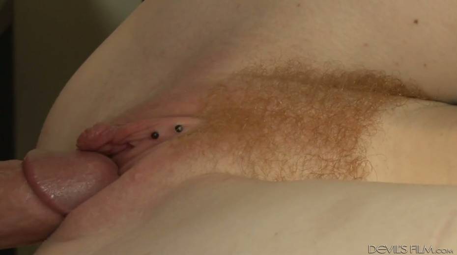 Red haired chick with hairy red pussy Katy Kiss is fucked outdoor and indoor