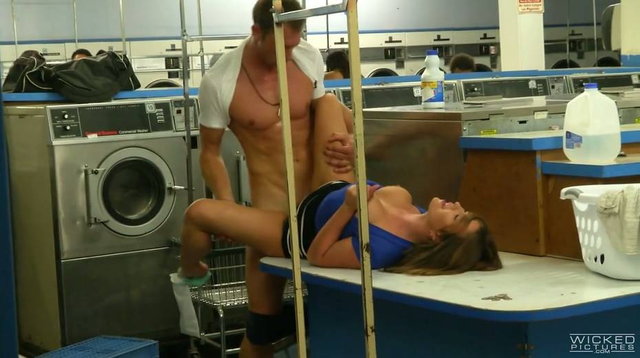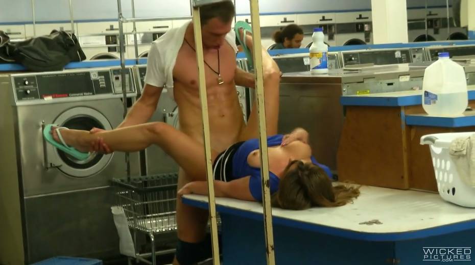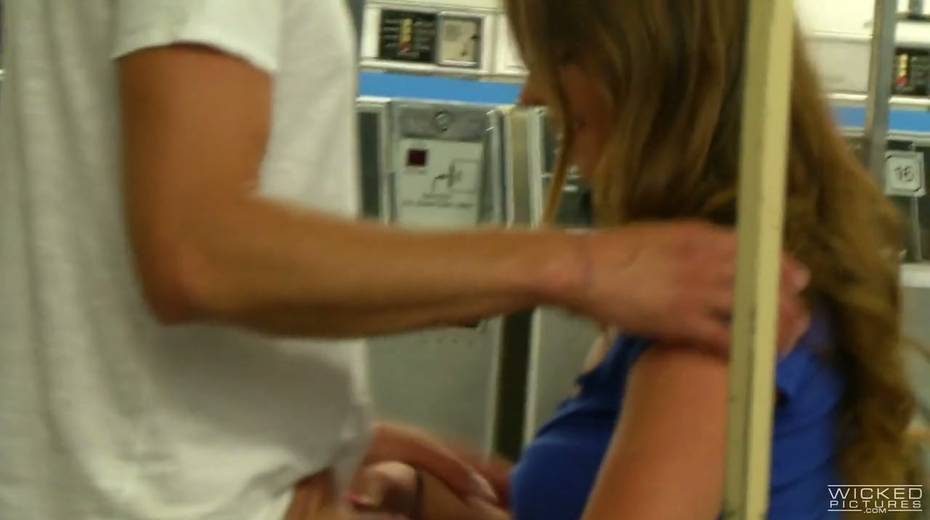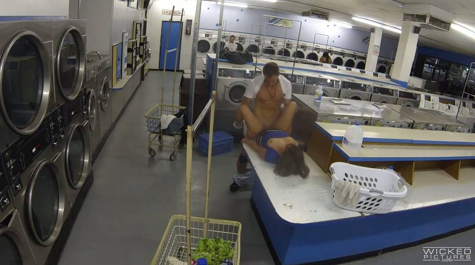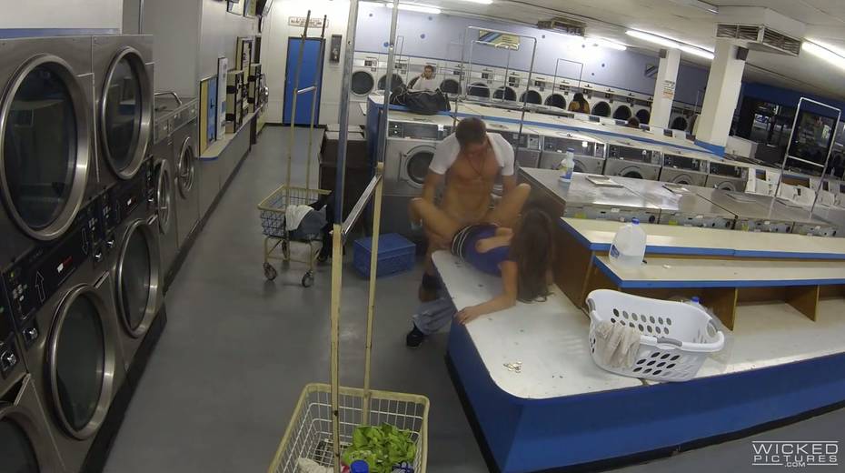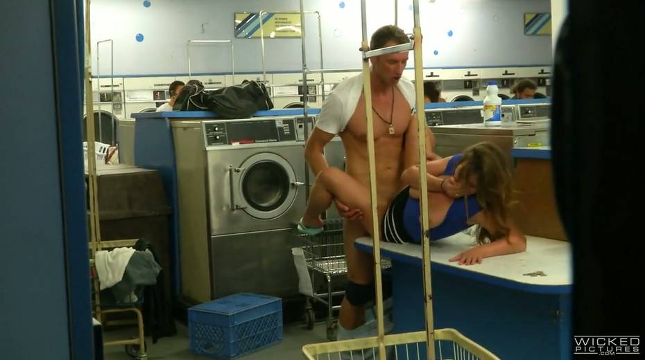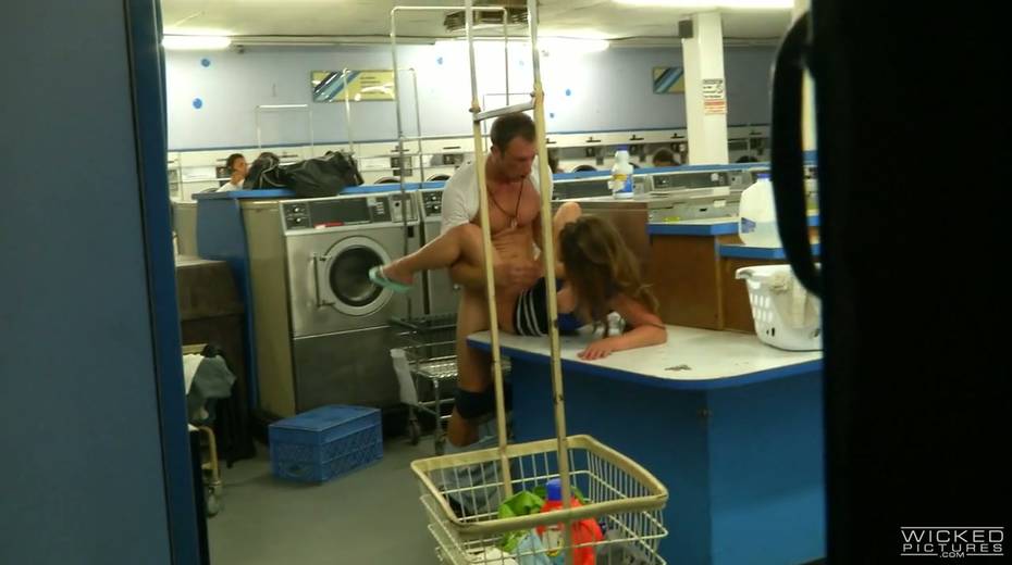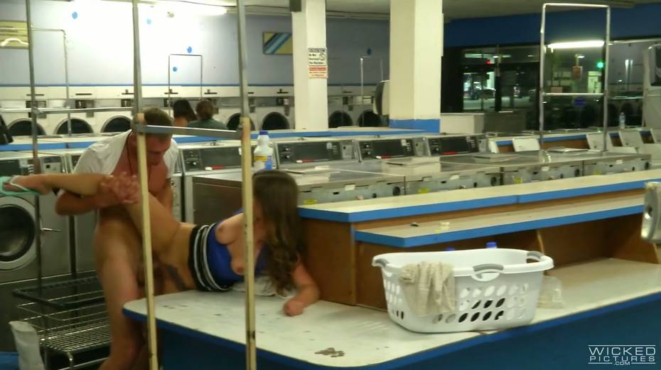 Shameless chick Alice Lighthouse enjoys having extreme sex in the public laundry
