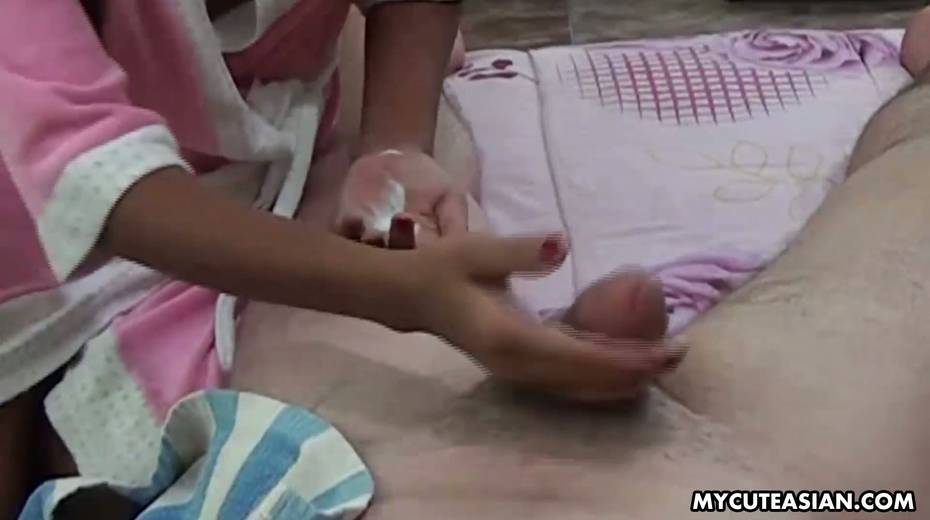 Cute Asian girlfriend enjoys playing with boyfriend's dick