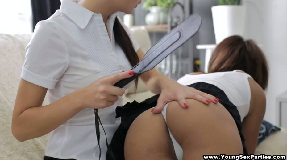 Girlfriends spank each other and arrange threesome sex with college fellow