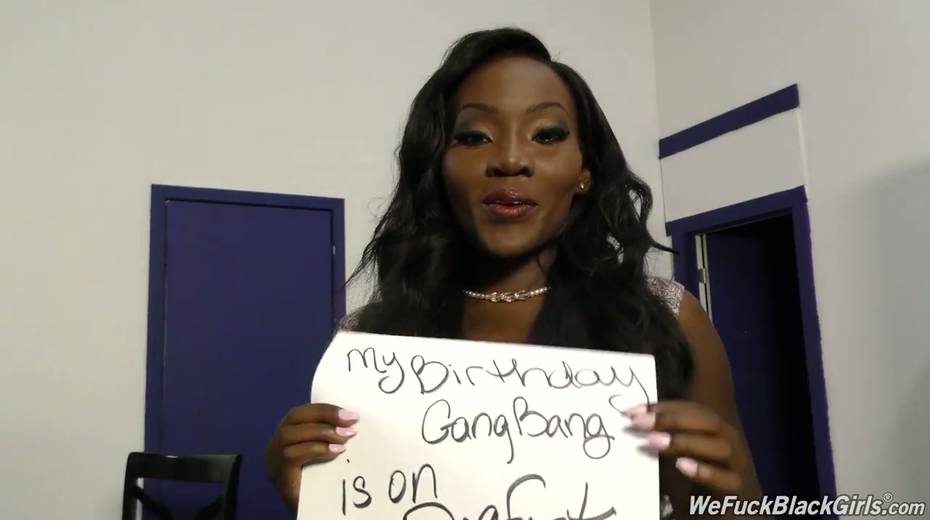 Black porn model Osa Lovely is eating birthday cake and sucking dick at the same time