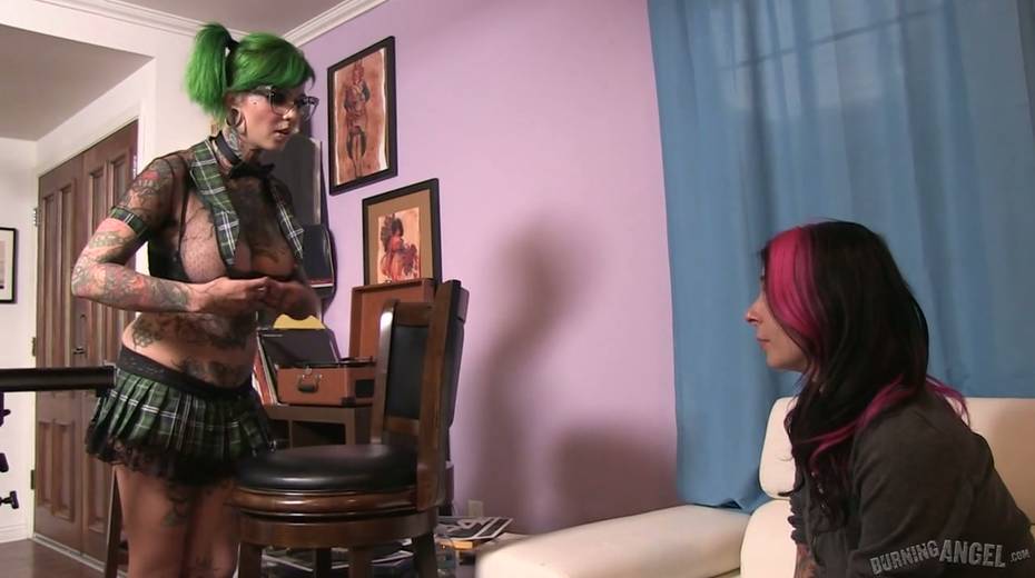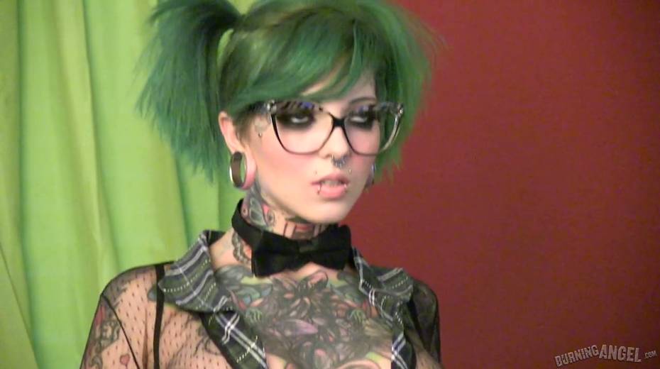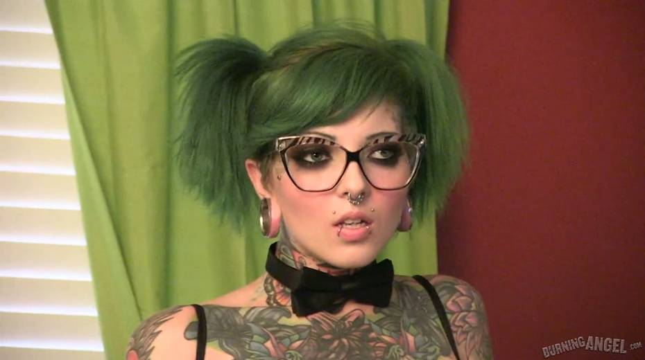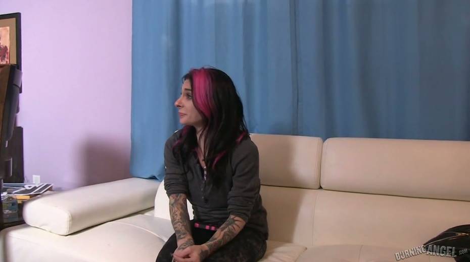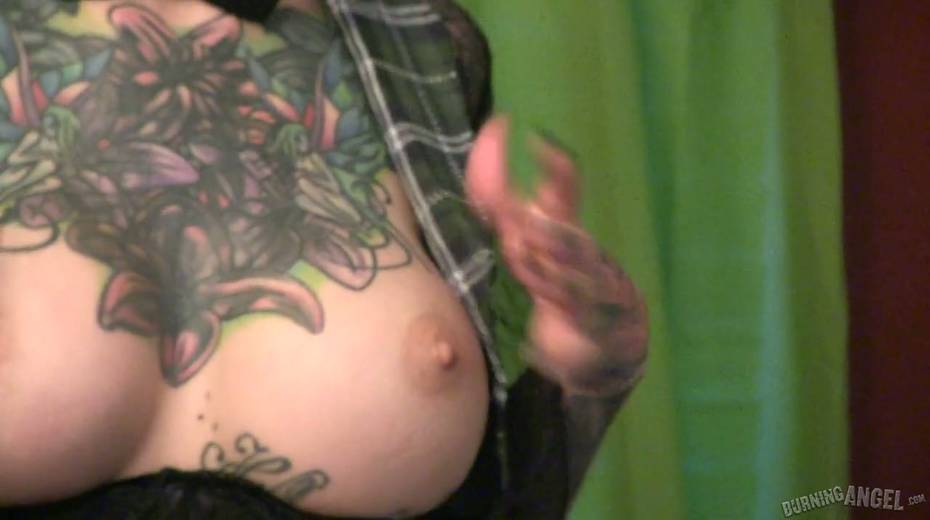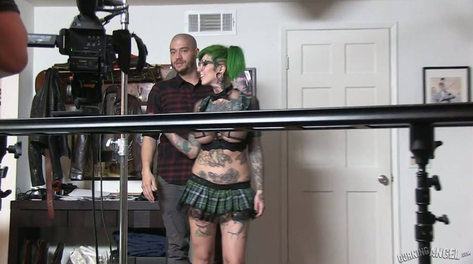 Salacious tattooed emo whore Joanna Angel in hot bts video
