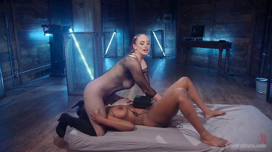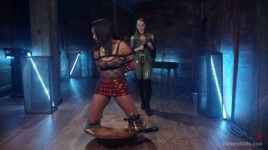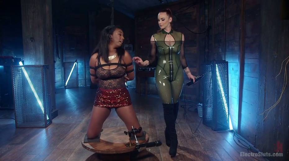 Horny mistress in latex fucks anus and pussy of Lisa Tiffian with the help of electric devices
