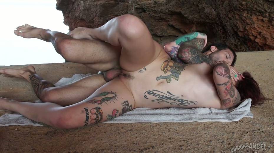 Wild tattooed bitch Silvia Rubi is fucked on the beach