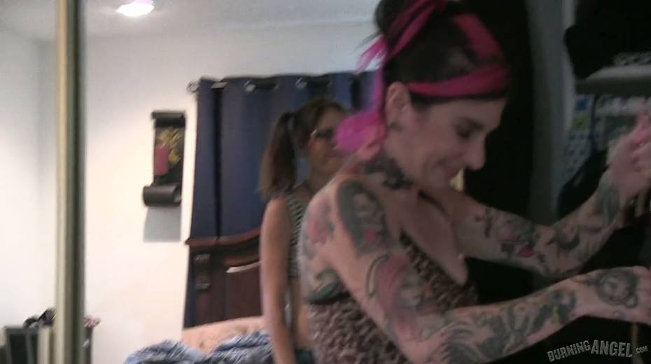 Backstage video featuring Joanna Angel and several nasty tattooed chicks