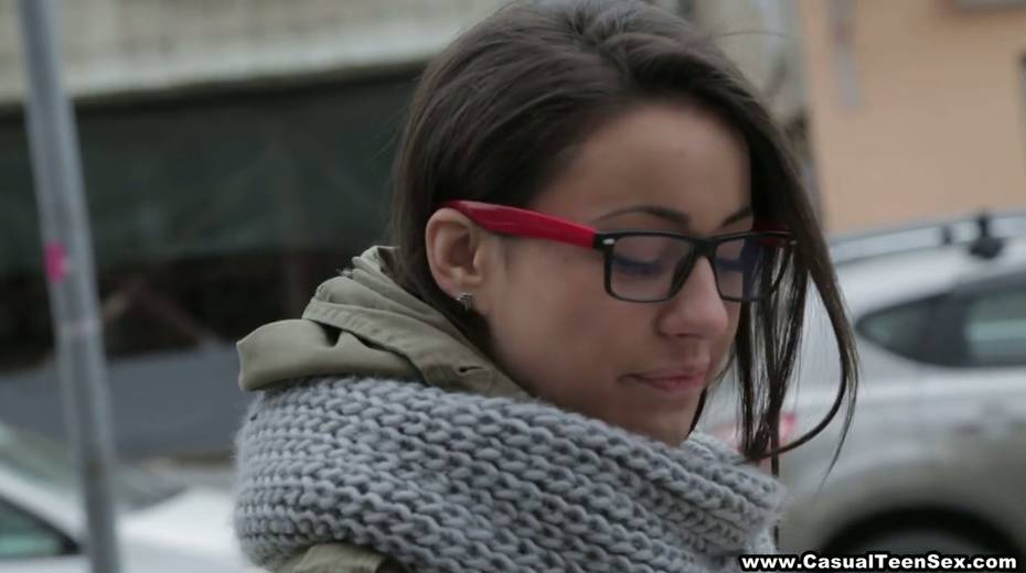 Nerdy brunette Ashly is fucked before taking cumshots on her glasses