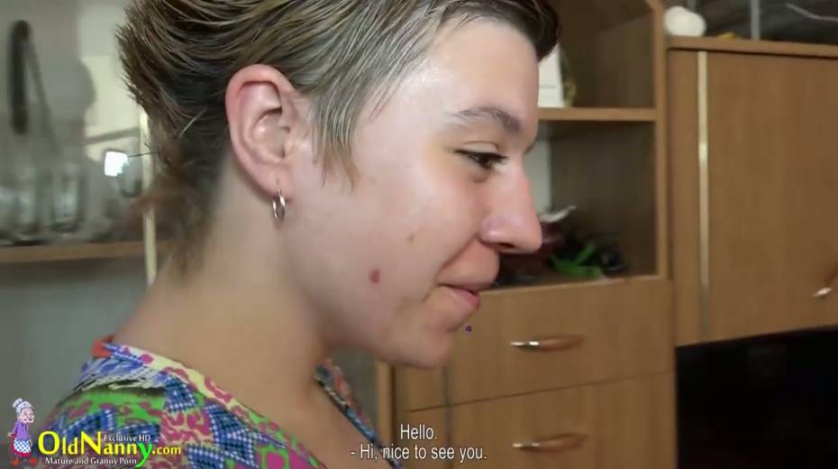 Young tattooed chick with puffy nipples fucks mature lesbian with strapon