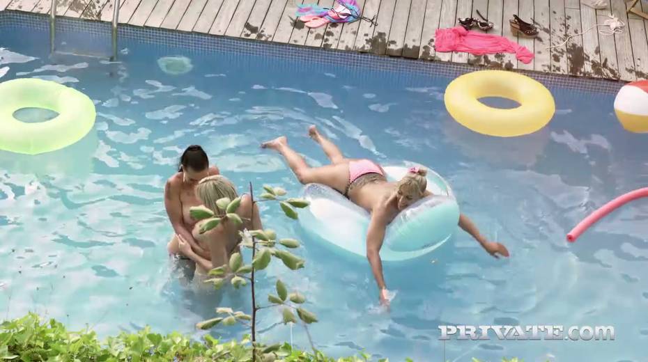 Insatiable harlot Julia Pink arranges dirty orgy by the poolside