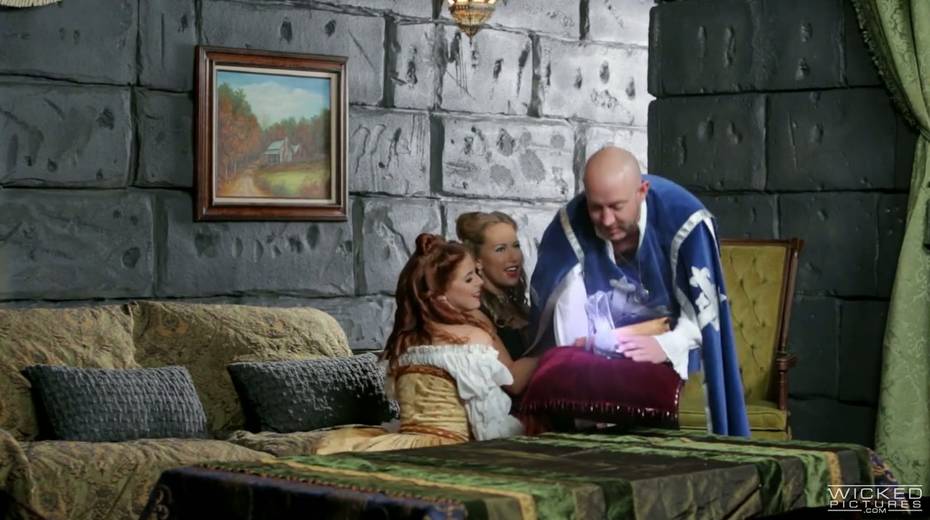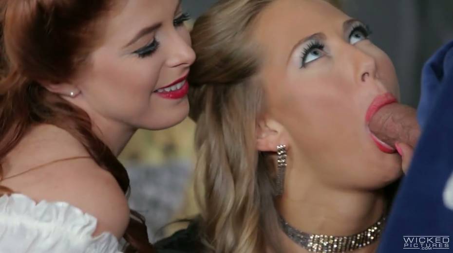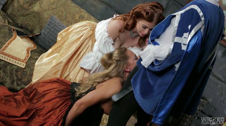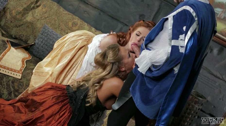 Stepsisters of Cinderella give blowjob to prince's guard
