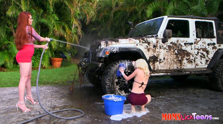Angry red haired milf Veronica Vain makes Piper Perri wash her car