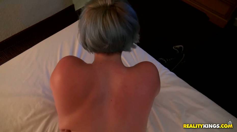 Big bouncing boobs of trashy looking whore with neon hair Ava Steel