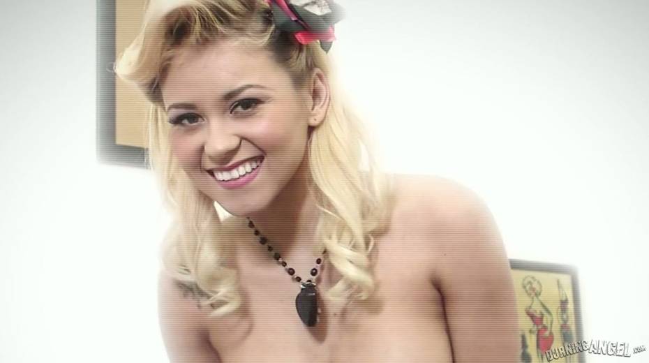 Tattooed blonde sucks big dick which belongs to famous porn actor Xander Corvus