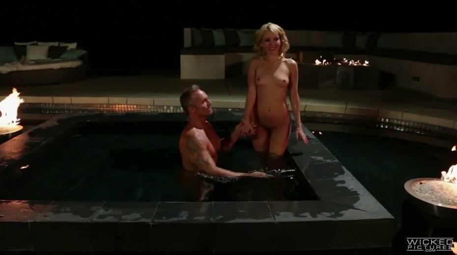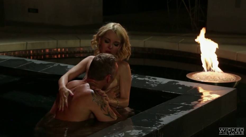 Horny blond babe Aaliyah Love is making love in the pool and on the white couch