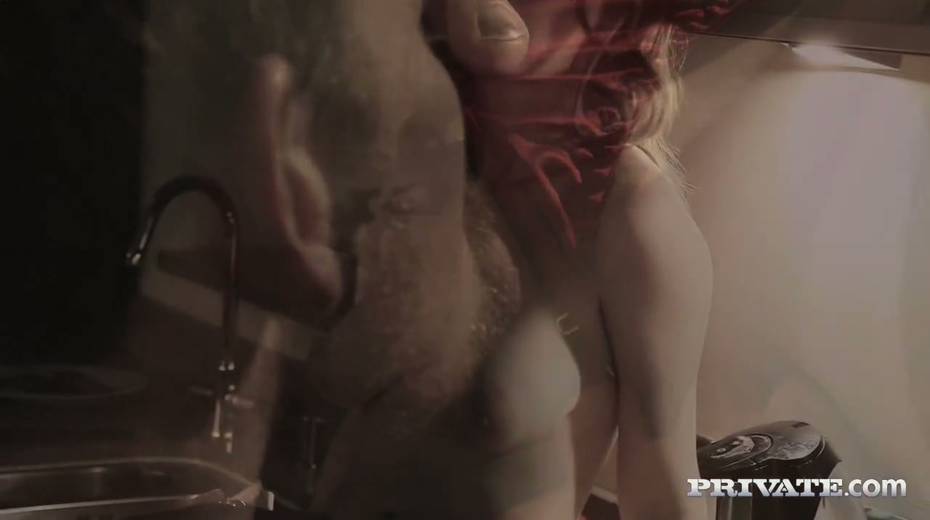 Alluring red haired housewife Lola Gatsby is having sex in the kitchen