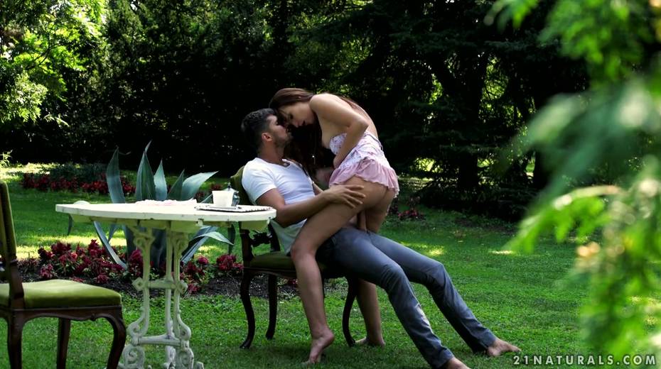 Romantic outdoor sex with red haired beauty Chelsea Sun in the garden