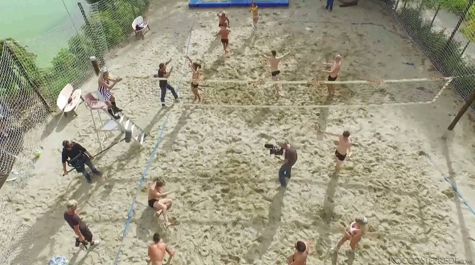 Sexually charged whores and sex-hungry dudes arrange dirty group sex orgy after playing volleyball