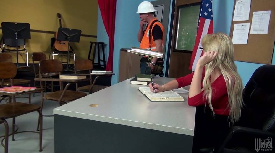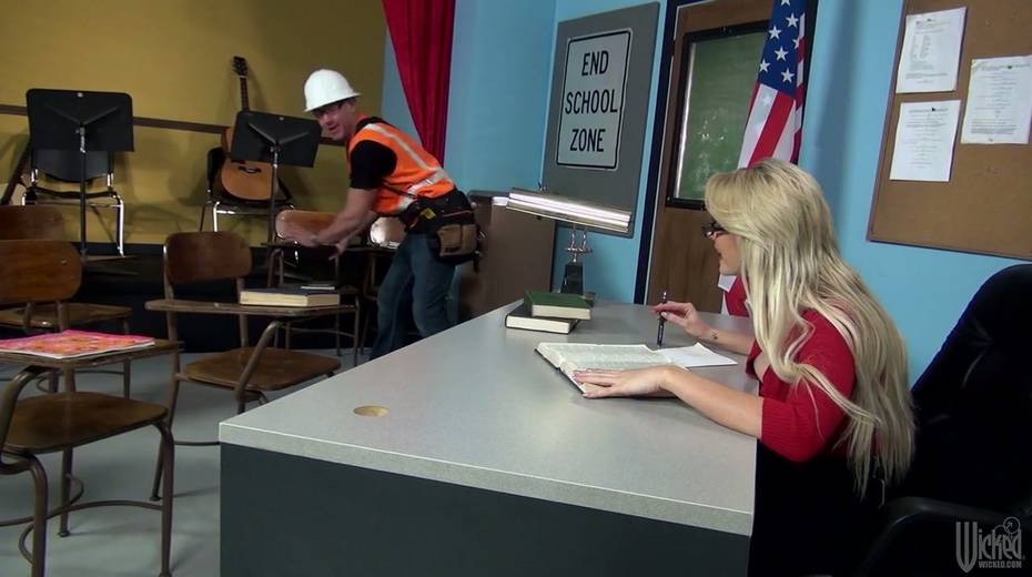 Super busty teacher Gigi Allens seduces worker and gets fucked right on the table