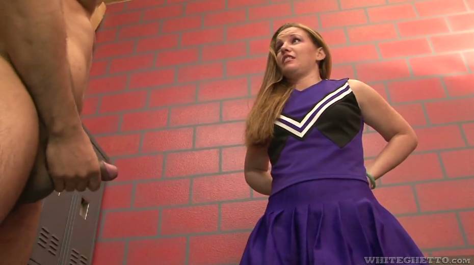 Nasty cheerleader Emily Eve is having dirty sex in the locker room