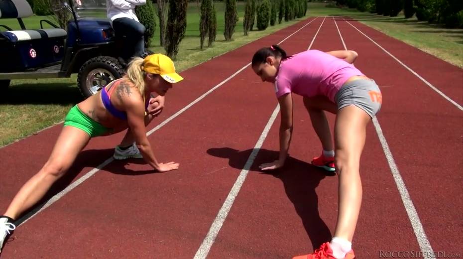 Raunchy dude fucks two sweaty chicks after running