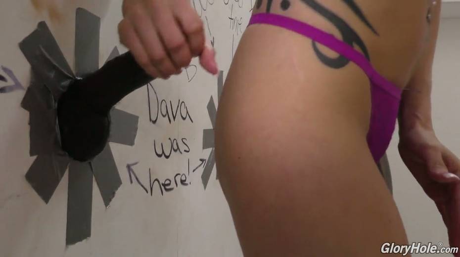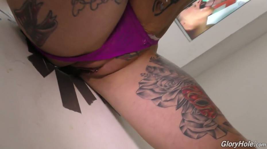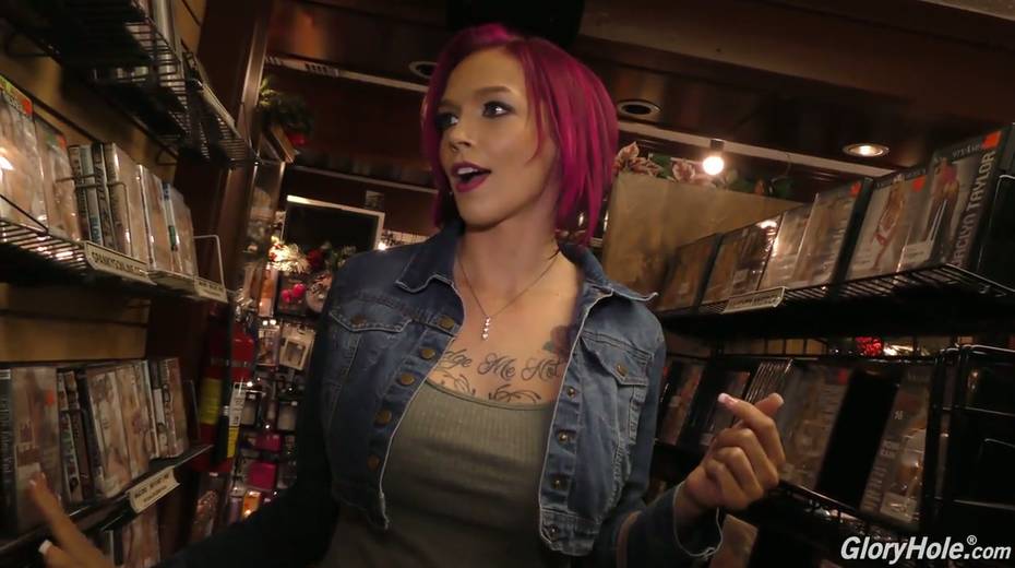 Pink haired emo slut Anna Bell Peaks blows dick in the glory hole room