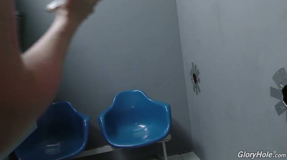 Busty blond milf Lexi Lowe is toying her pussy in the glory hole room