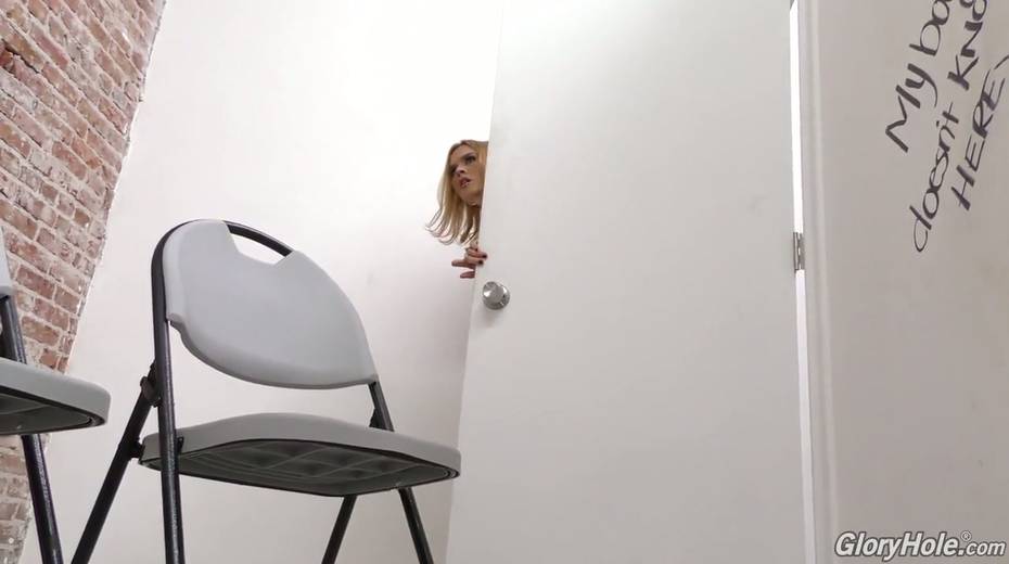 Salascious slut Krissy Lynn is sucking black dick in the glory hole room