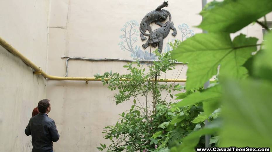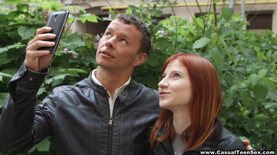 Alluring girl with bright red hair Lili Fox gives her head before casual teen sex