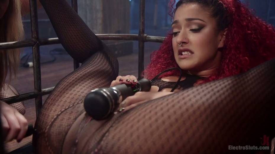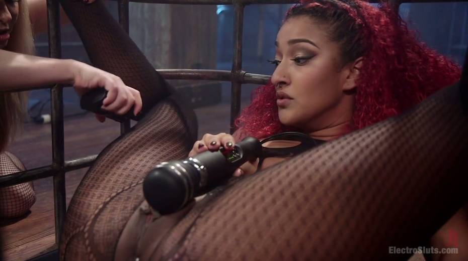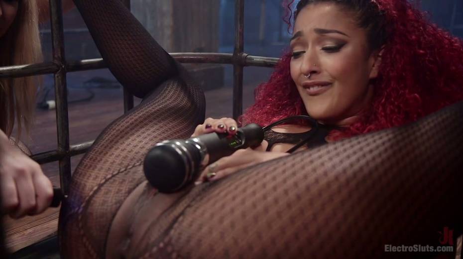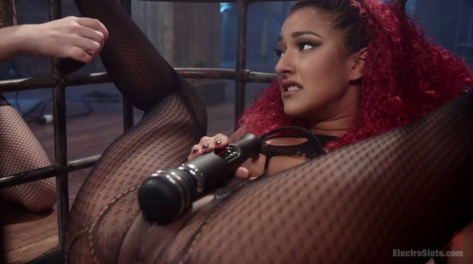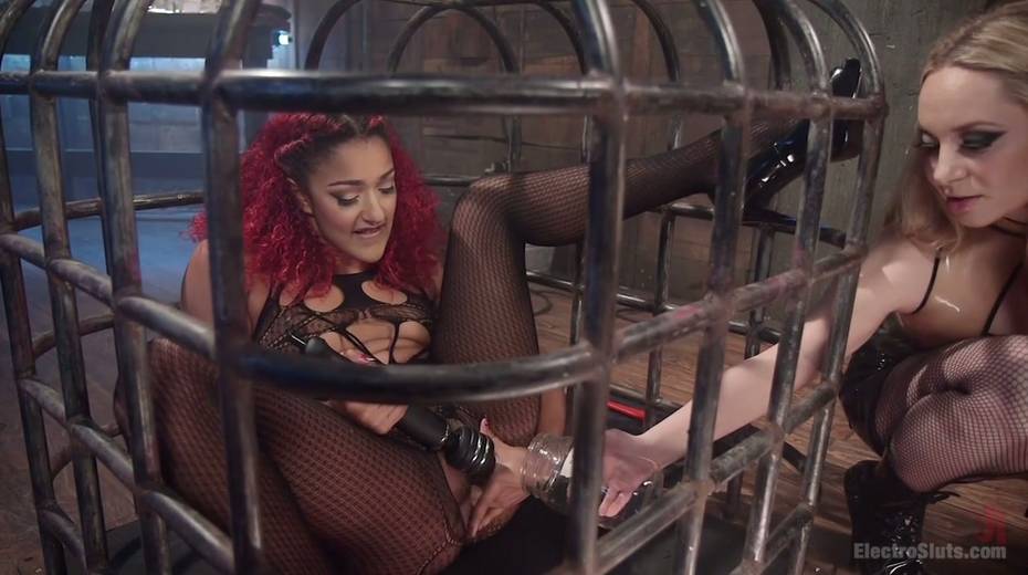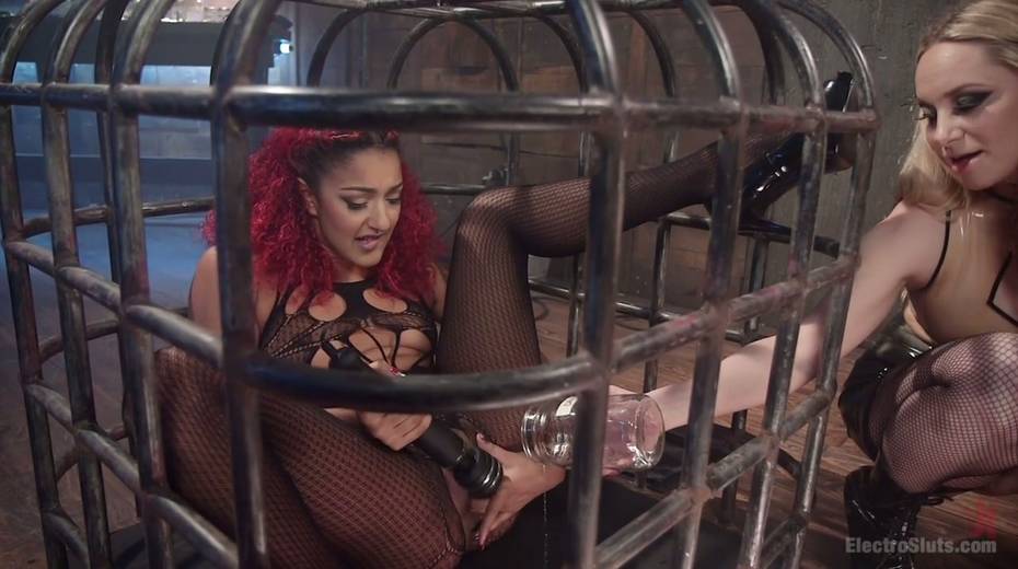 Electro slut Aiden Starr fucks twat of nasty chick wrapped in plastic wrap
