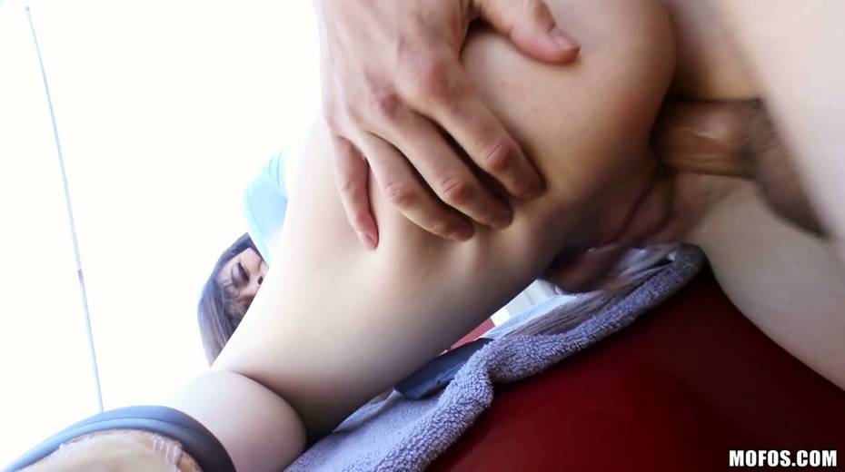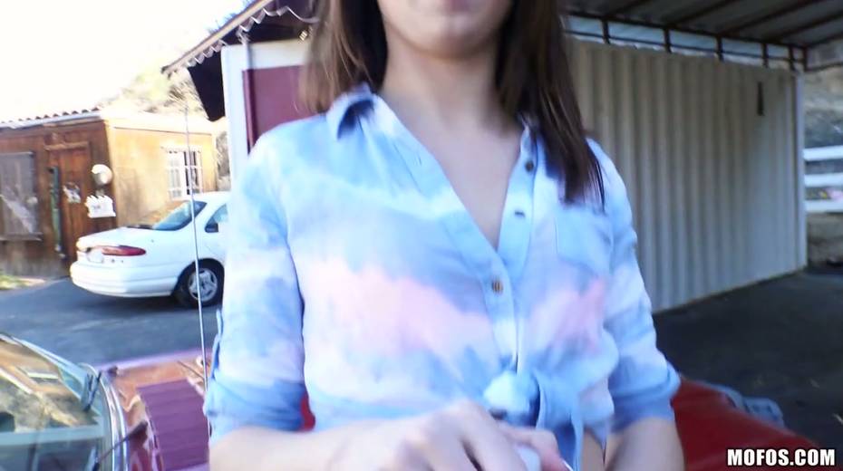 Hot tempered stud fucks Aspen Ora's but thole right on the car hood