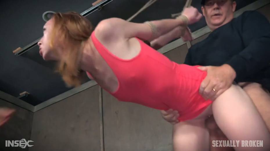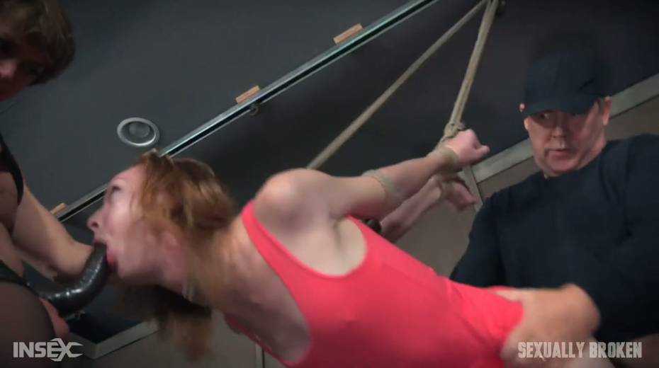 Mistress wearing strapon and her servant fuck tied up red haired chick Katy Kiss