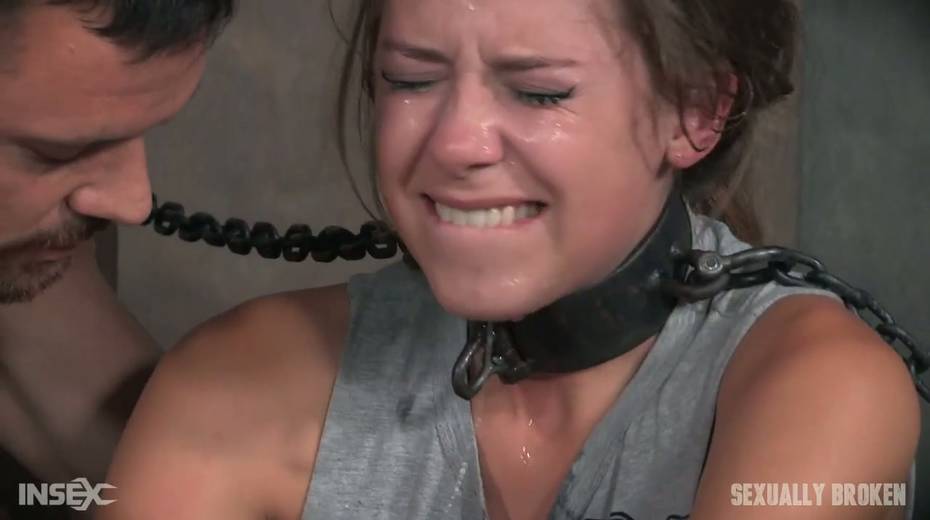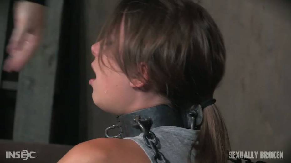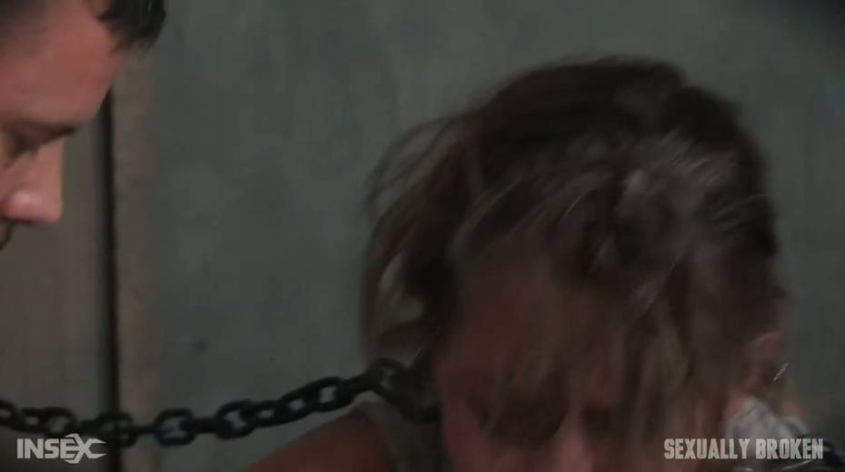 Chained bitch Zoey Laine is fucked in her throat in the dark torture room