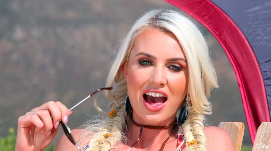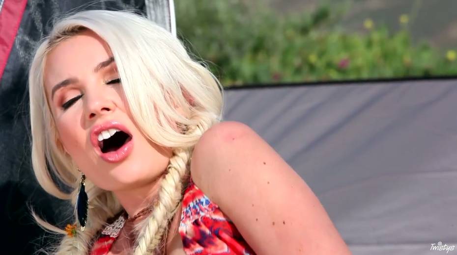 Alluring blond babe Gigi Allens is masturbating her slit in a camp