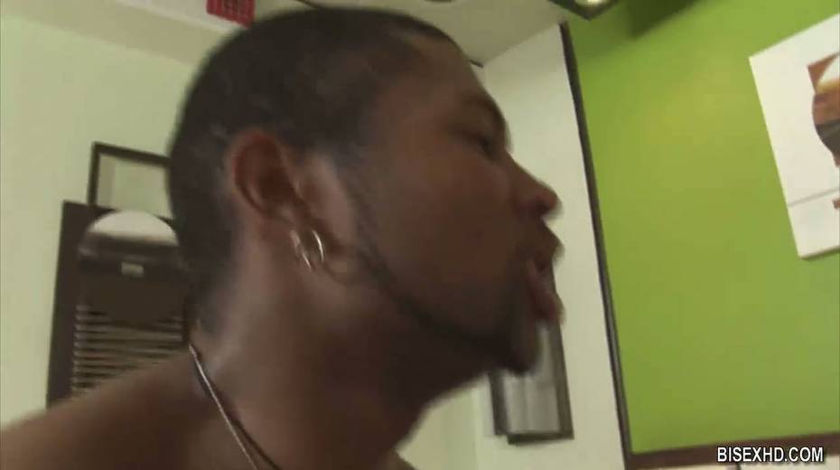 Two bisexual dudes kiss each other while Alessandra sucks their dicks