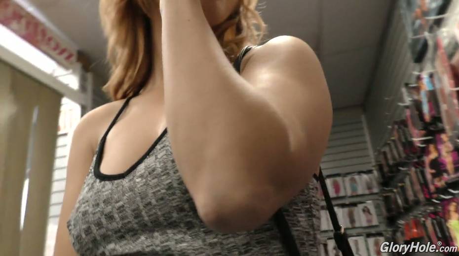 Ginger chick with red haired pussy Edyn Blair is having fun in the glory hole room