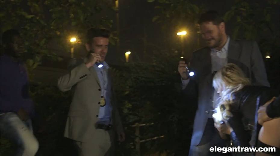 Three sex-hungry dudes fuck insatiable whore Kimber Delice outdoor