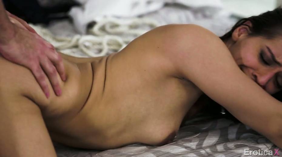 Blind folded babe Sara Luvv sucks dick before steamy and passionate sex