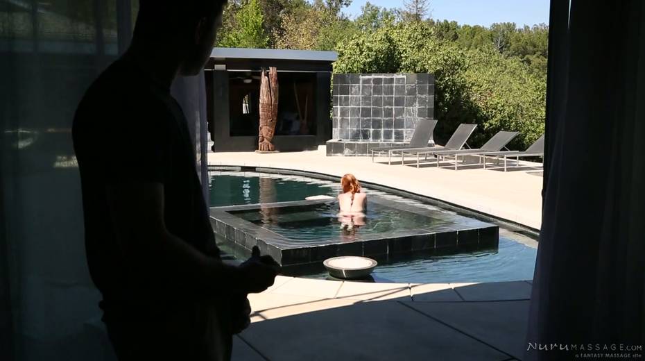 Big tittied red haired milf Lauren Phillips gives nuru massage and gets her anus fucked